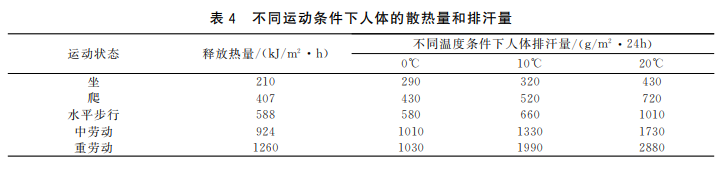另外關(guān)于透濕性的檢驗(yàn)。人體在不同運(yùn)動(dòng)情況下的散熱量和排汗量如下圖所示,因?yàn)槿梭w在劇烈運(yùn)動(dòng)下的出汗量約2200-2500g/(m2?24h),所以沖鋒衣面料的透濕度應(yīng)大于2200.
