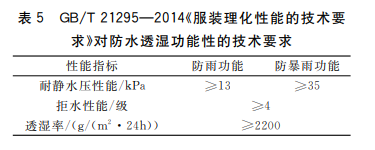 根據(jù)GB/T 21295-2014《服裝理化性能的技術(shù)要求》,沖鋒衣只有達(dá)到一下指標(biāo)才能算具備防水、透濕的功能。
