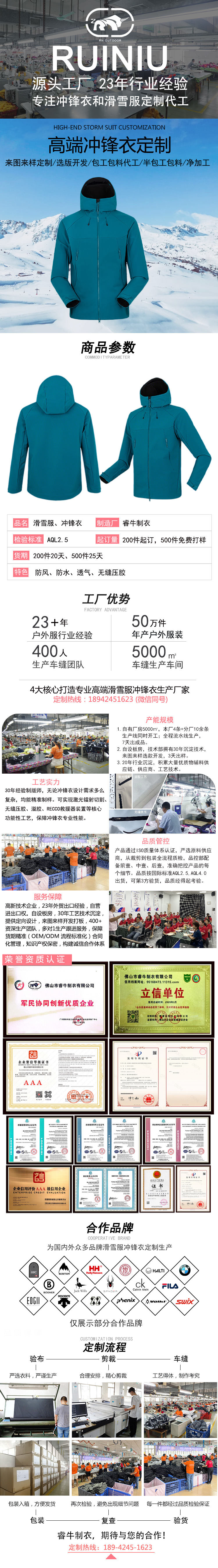 優質面料:專業高端沖鋒衣定制23年沉淀優質供應商資源,可根據客戶需求精選優質面料。