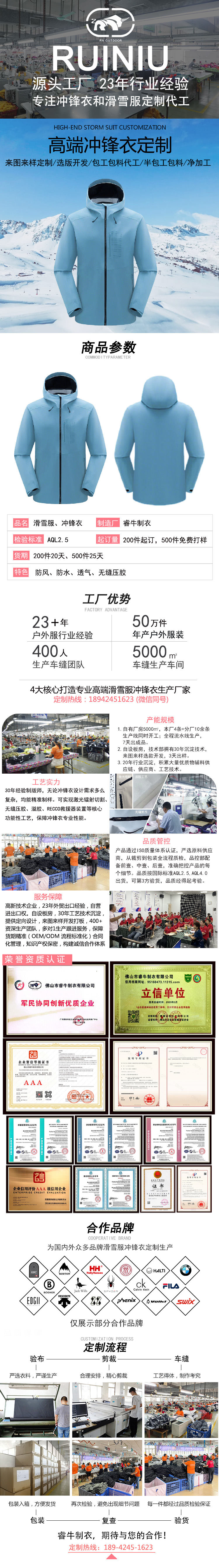 沖鋒衣加工廠包工包料定制硬殼沖鋒衣