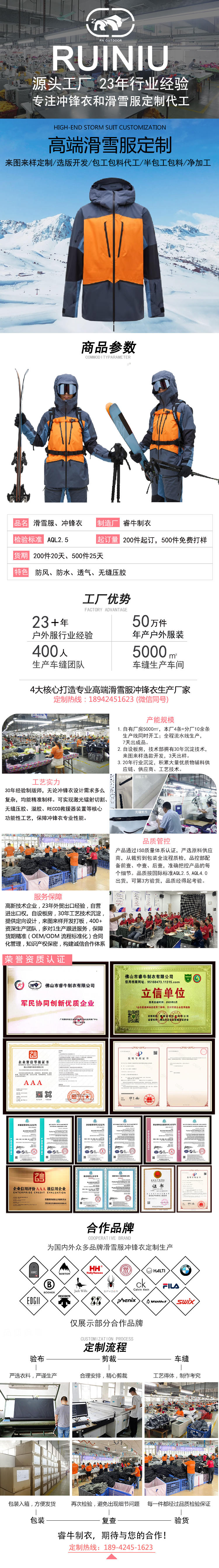 優(yōu)質(zhì)面料:專(zhuān)業(yè)高端滑雪服定制23年沉淀優(yōu)質(zhì)供應(yīng)商資源,可根據(jù)客戶(hù)需求精選優(yōu)質(zhì)面料。