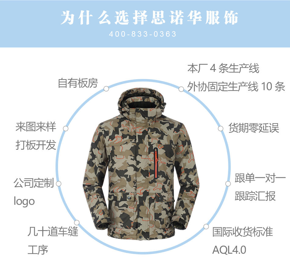 鐳射切割:衣服口袋采用鐳射激光精確切割,再使用膠條密封,在滿足防水的功能下又不失美觀。